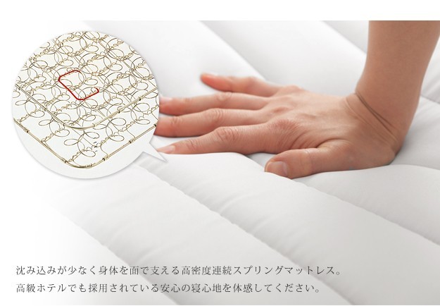 【!ご注文前に必ずご確認下さい!】●メーカー直送のため代金引換はお受けできません。●沖縄・一部離島は別途送料がかかります。お見積りいたしますのでお問い合わせ下さい。●商品サイズと設置場所、搬入経路のご確認をお願いいたします。●安心のメーカー2年保証商品について:高密度連続スプリングの脚付きマルチラスマットレス。硬めの寝心地で体をしっかりと支えます。サイズ(cm):幅98x奥行196x高さ38.7cm・約26kg材質:側地-ポリエステル87%・アクリル13%、中身-ウレタンフォーム、脚部-スチール、コイル-マルチラスハードスプリング・コイル数560一部組立品(脚部取付)株式会社ナカムラ(61400105)