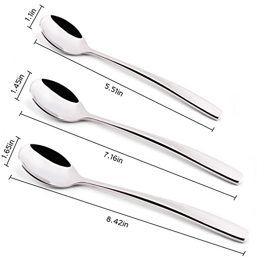 Studio : Justdolife Publisher : Justdolife Product Description Color: Silver Material: Stainless steel Size: S: Length: 15cm(5.91in), 2pcs M: Length: 18cm(7.09in), 2pcs L: Length: 22cm(8.66in), 2pcs Package Includes: 6 x Spoons Note: - Please refer to the measurement. Tiny measuring error is allowable in normal range. - There might be a little color difference due to the monitor, camera or other factors, please refer to the physical item. Package Including 6 x Spoons 0