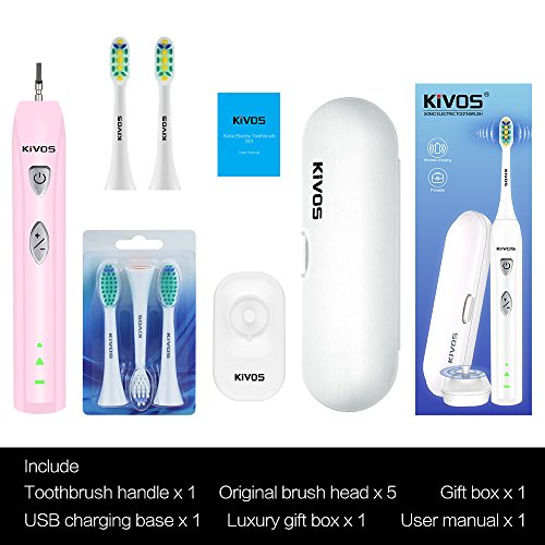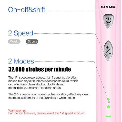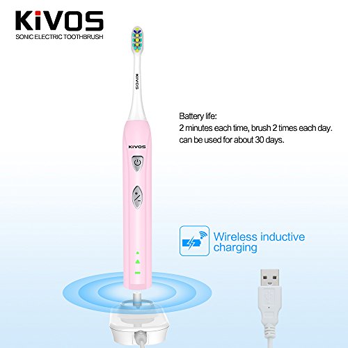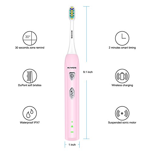 KIVOS sonic electric toothbrush for adult children:ABS handle with 2pcs Food Grade PP duPont brush heads. soft reminder bristles fade to ensure you know when it is time to replace them.
