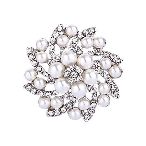 -. Title : FANZE Women's Austrian Crystal Cream Simulated Pearl Gorgeous Flower Wedding Bridal Brooch