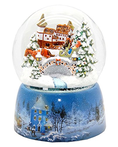 20066 Snow Globe Nostalgic Sleigh Ride Winter Landscape 6 inch diameter, Snowmotion & Music Box