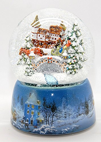 - A special snow-blowing mechanism swirls snow continuously around the scene in the water-filled globe and the flick of a switch - manually operated music box