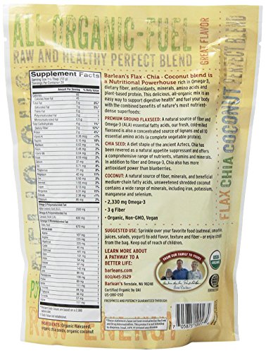 -. Feature : Organic, vegan, non-GMO / 2,330 mg omega-3 / 3 grams fiber