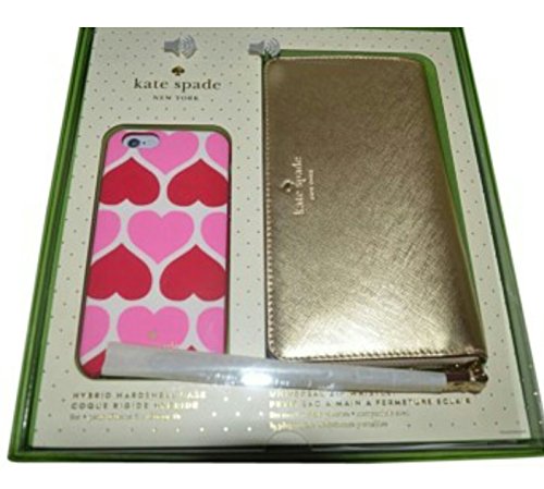 -. Binding : Misc. -. Brand : Kate Spade New York -. Color : Gold/Pink/Red -. Department : women -. EAN : 0840076165667 -. ProductGroup : Shoes -. ProductTypeName : BEAUTY -. Size : One size -. Title : Kate Spade Universal Zip Wristlet and iPhone 6/6S Snap On Case Set, Hearts/Gold -. UPC : 840076165667