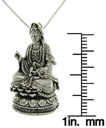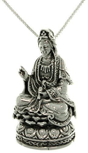 -. Title : Jewelry Trends Sterling Silver Kwan Yin on Lotus Flower Pendant on Box Chain Necklace