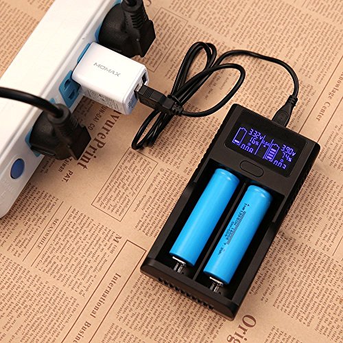 - LCD screen of the 18650 charger can show the charging status. It tells you what volts it's charging at, what percentage it is currently at, it keeps the amount of time that it has been charging, and it has shows the % in single increments. It automatically stop charging if it’s full or detecting improper usage.