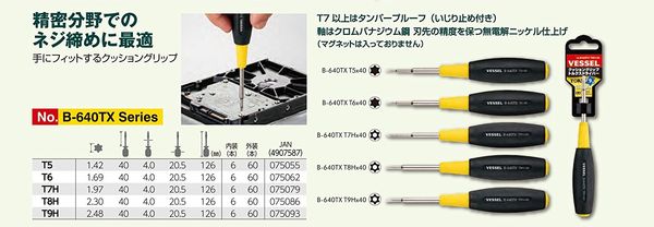 ●用途:精密機械、電子部品等のトルクスネジ専用