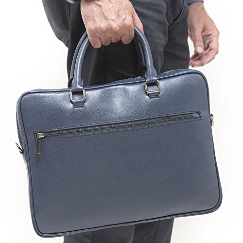 Product Description Immaculately crafted, the James Slim Briefcase from Marlafiji. Featuring one main deep compartment, this versatile briefcase is sleek and stylish, perfect for all your daily work needs. - Dimensions L 35 cm x H 28 cm x W 5 cm - 100% Genuine leather - Gunmetal hardware - One main deep compartment - Adjustable shoulder straps - Zip up closure - Includes dustbag - Made in Italy 0