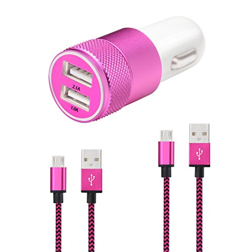 USB Cable, Car charger, BestElec 3.1A Dual USB Port Rapid Car Charger+[6FT+3FT] High Speed Nylon Braided USB 2.0 A Male to Micro B Data Sync & Charger Cable for Android, Samsung, LG, Sony and More