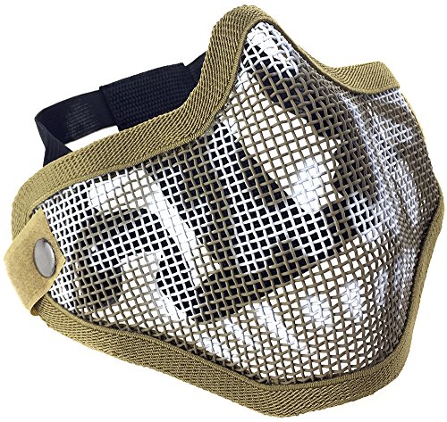 -. Binding : Misc. -. Brand : SportPro -. Color : Black -. EAN : 6081499598555 -. Feature : • Flexible and Moldable Mesh / • Lower Face Protection / • Padded Head Strap for Extra Comfort / • Adjustable Head Band / • Maximum Air Flow -. IsAutographed : 0 -. IsMemorabilia : 0 -. Label : CM -. Manufacturer : CM -. ProductGroup : Sports -. ProductTypeName : SPORTING_GOODS -. Publisher : CM -. Studio : CM -. Title : SportPro Mesh Lower Face Skull Half Face Mask for Airsoft - Dark Earth
