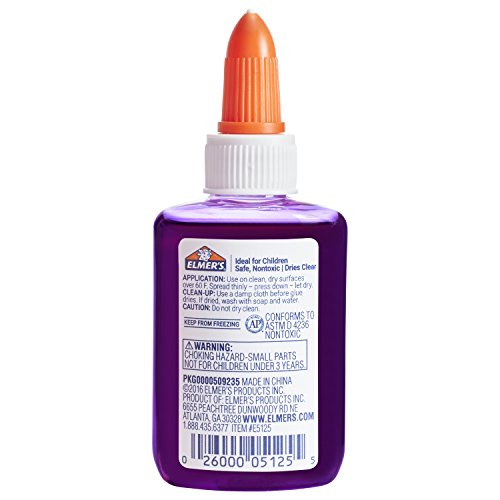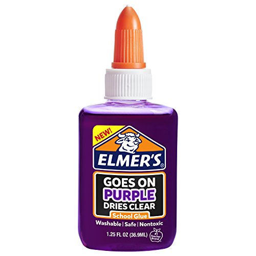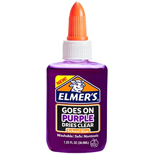 Goes on Purple, dries clear, Elmer's Disappearing Purple liquid glue helps kids see exactly where they’re gluing while also drying clear for the perfect project every time! the liquid school glue applies smoothly and works great on a wide range of artist crafting materials. This Elmer's glue is also washable for easier cleanup. Add on its safe, non-toxic formula and you can see why it’s part of the #1 teacher brand, Elmer's - ideal adhesive for classrooms, homes and youngsters.Feature