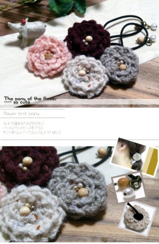 니트 플라워 헤어 고무 우드 비즈와 펄 비즈가 액센트☆약3.5cm의 꽃은 매우 사랑스럽다☆니트 플라워 헤어 고무 우드 비즈와 펄 비즈가 액센트☆약3.5cm의 꽃은 매우 사랑스럽다☆헤어 고무 컬러 밴드 헤어 악세사리