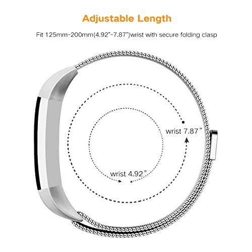 Fitbit Alta HR and Fitbit Alta Bands Metal Replacement Adjustable Milanese Stainless Steel, Runme Bracelet Trap with Magnet Lock, Accessories for Fitbit Alta HR&Alta