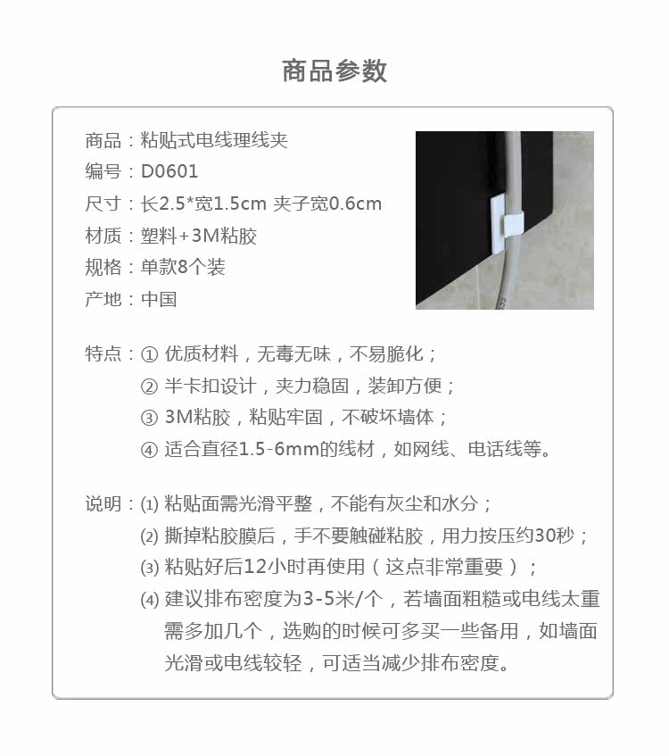 Wire management folderMaterial: plastic + viscoseNote: After the paste is good, it is best to use after 12 hours.