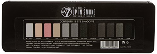 -. Binding : Health and Beauty -. Brand : W7 -. EAN : 5060406140842 -. Feature : W7's Up In Smoke is an In The Night Smokey Shades palette that provides the perfect spectrum from smokey dramatic hues to lighter natural shades for bit of a twist, and a multitude of looks / The tin palette contains a mirror, double ended applicator brush and 12 versatile and smoldering shades: in matte, pearl and metallic finishes / Ideal for the smoky eye lover with every shade of grey to create the ultimate smoky eye for day or night looks / When applied properly, W7 shadows don't crease or fade and blend together beautifully / A gorgeous spectrum of colors and finishes from a soft and sumptuous matte gray to a perfect pearlescent off white and shimmery rosy pink -. IsAdultProduct : 0 -. Label : W7 -. Manufacturer : W7 -. Model : W7-140842 -. MPN : W7-140842 -. PackageQuantity : 1 -. PartNumber : W7-140842 -. ProductGroup : Beauty -. ProductTypeName : BEAUTY -. Publisher : W7 -. Studio : W7 -. Title : W7 Natural Nudes Naked Eye Color Palettes Up In Smoke 12-in-1 Gorgeous Eyeshadow Shades for Smoldering Smoky Eyes