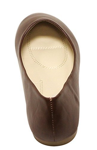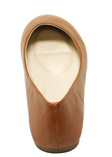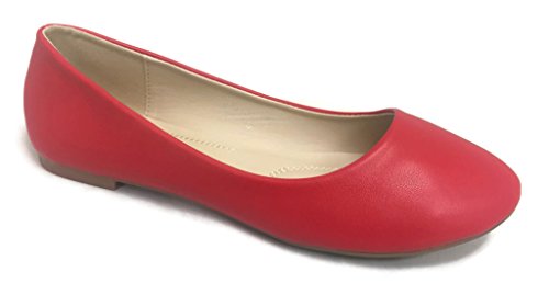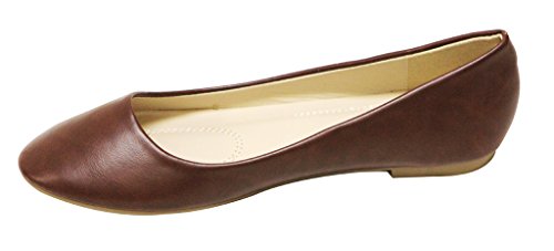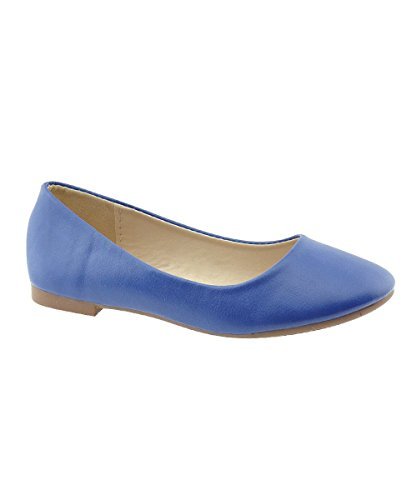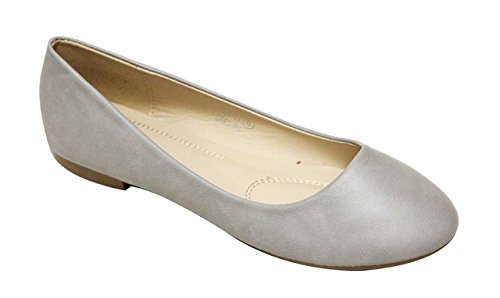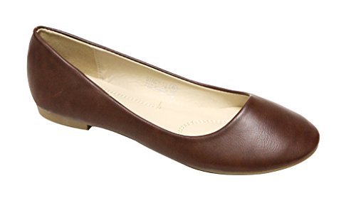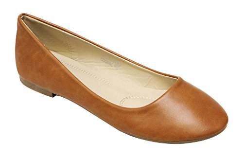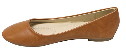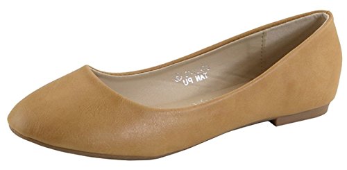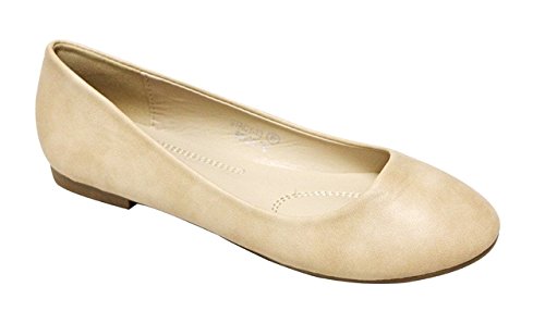 | Bella Marie Stacy-13 Women's round toe faux leather slip on boat ballet flat shoes |