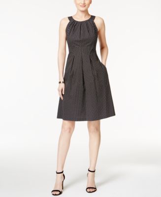 A festive polka-dot pattern gives life to this form-fitting halter dress by Nine West.Concealed back zipper with hook-and-eye closure