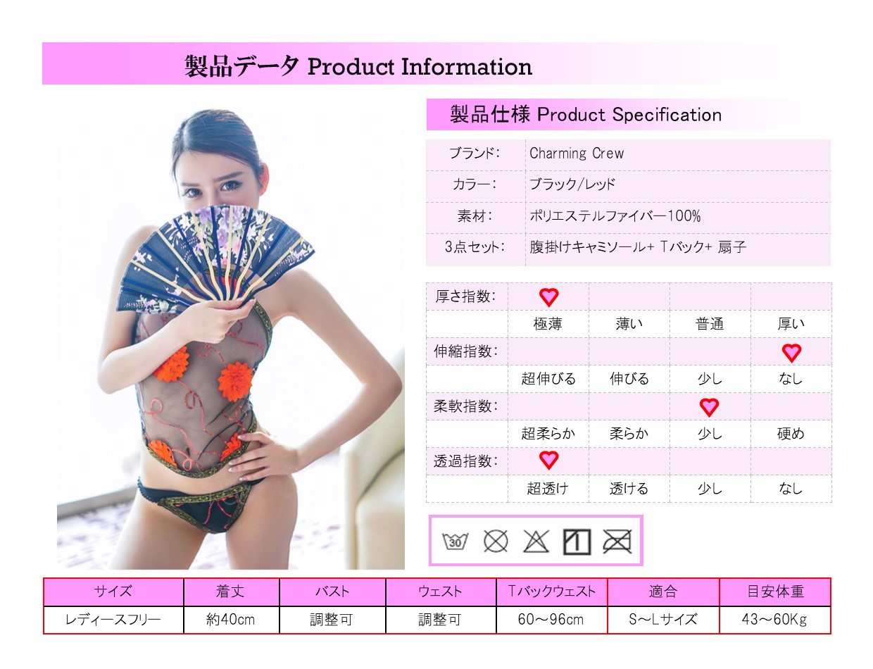 ■商品名ハイレグ レオタード セクシー コスプレ 腹掛け Tバック 衣装 コスチューム セクシー下着 勝負下着 ランジェリー テディ セクシーランジェリー エロ レース 下着 通販■セット内容 FM7885-3レース腹掛けキャミソール Tバック 扇子 3点セット☆少し過激でセクシーなレース腹掛けスタイルコスチュームセットです(^^♪☆透けるレース生地にかわいい花のアクセント付き!大胆カットのオープンボディスタイル!☆サイズ:レディースフリーサイズ(S~Lサイズ相当)☆カラー:ブラック/レッド☆素材:ポリエステルファイバー100%※ベビードールやセクシーランジェリーなどの下着類やコスプレなどは商品名を伏せて発送させていただきます。※スク水 スクール水着 レオタード 衣装などコスプレ 衣装、コスチューム 衣装を激安で販売!ハロウィン コスプレ・ハロウィン 仮装・ハロウィン 衣装などバリエーション豊富、学園祭 文化祭のコスプレ 衣装やコスチューム 衣装なら当店におまかせ下さい!