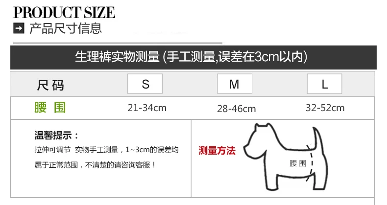 生理裤不仅可以在狗狗生理期使用,保持家里卫生,和狗狗自身的卫生,也有效的。