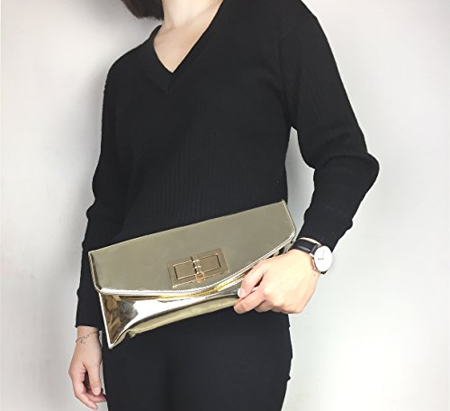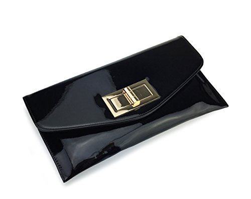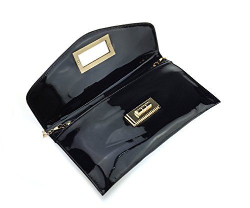 -. Title : Hoxis Charms Envelop Patent Faux Leather Turn Lock Clutch Womens Evening Handbag With Chain Strap
