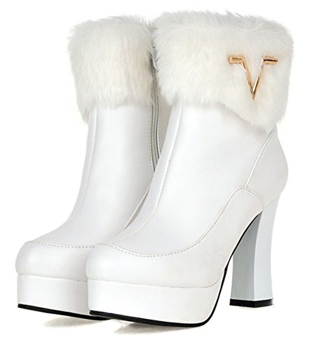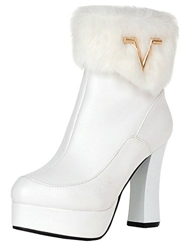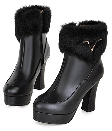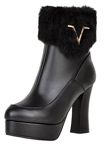 Binding : Apparel Product Description The cool weather is coming. And do you need to change the style of your shoes? If you have this idea, why not choose the ideal shoes in our shop? This pair of boots is for women, girls, young ladies and office workers. You will look sexy and chic when wearing them. The heels measure 4.1 inches. You will look slimmer and slender in their block heels. So you will not feel too tired when walking with them. The pair of shoes features ankle warp and inside zipper. The design of round toe and fluffy fur will make you look cool. The sole is made of good rubber. You will feel comfortable in their soft bottom. They are of high quality and durable. Come on and take them away! 0