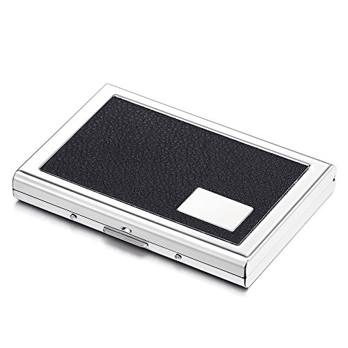 (MECTALII)/Accessories/Wallets, Money Key Organizers/DIRECT FROM USA/Stainless Steel and Black Leather Credit Card Holder Name Cards Case for Men Women, RFID Block ...