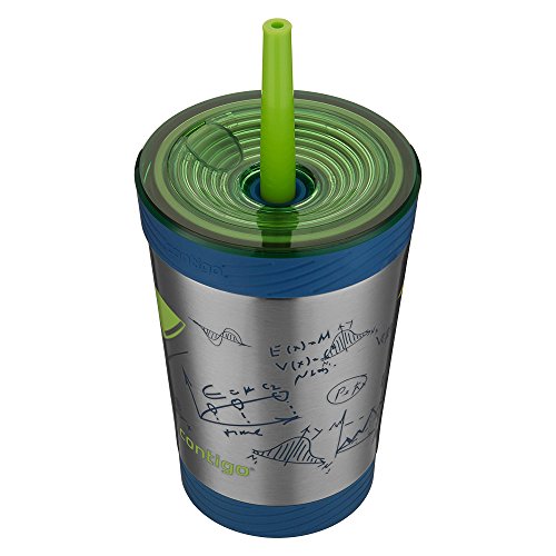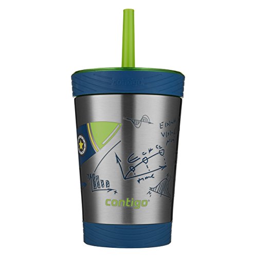 Thanks to the Contigo THERMALOCK Spill-Proof Kids Stainless Steel Tumbler with Straw, children over 3 can sip out of a cup like the big kids. No need to worry about messes, even if your toddler holds this well-designed tumbler upside down. Our innovative engineers put a leak-proof silicone seal around the straw opening on the lid and a spill-proof valve inside the straw. For good measure, they added a soft-grip bottom pad to minimize skids and tipping. The THERMALOCK double-walled vacuum insulation keeps drinks cold up to 10 hours and helps prevent condensation, even after hours of fun at a summer picnic. Road trip? The 12-ounce tumbler fits most car cup holders. Rest assured, all materials are 100% BPA-free. After a full day at the playground, you’ll be happy to know that body, lid, and straw are dishwasher-safe on the top rack and the straw twists apart for easy cleaning.Feature