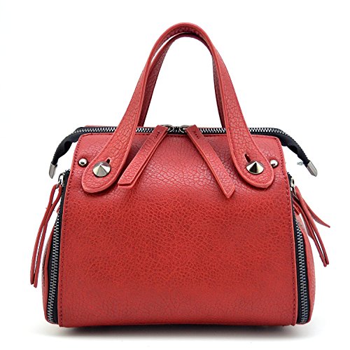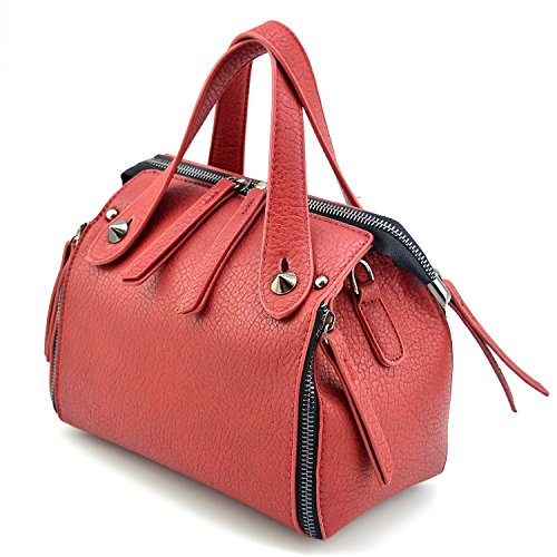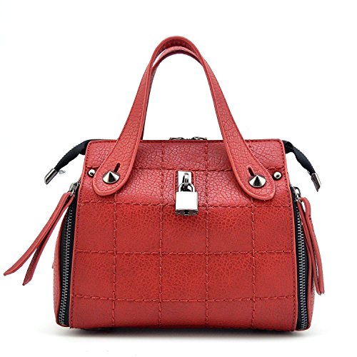 -. Title : Mn&Sue Punk Women Grid Check Padlock Multi Zipper Leather Top Handle Doctor Handbag Bucket Satchel