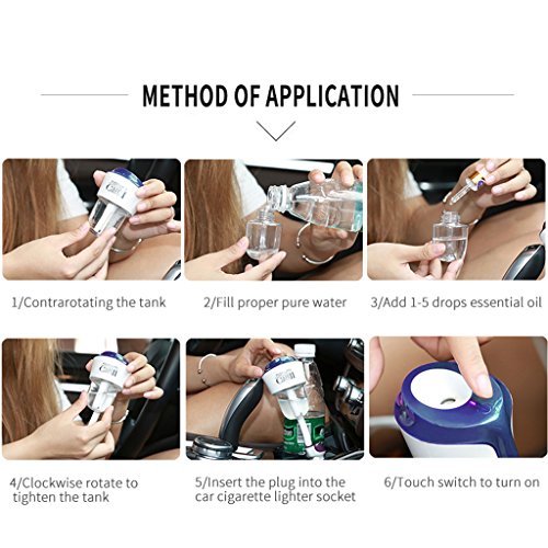 - Very easy to use,put back the tank and rotate it clockwise to fasten it tightly,plug the device into your car port and press the on/off button;