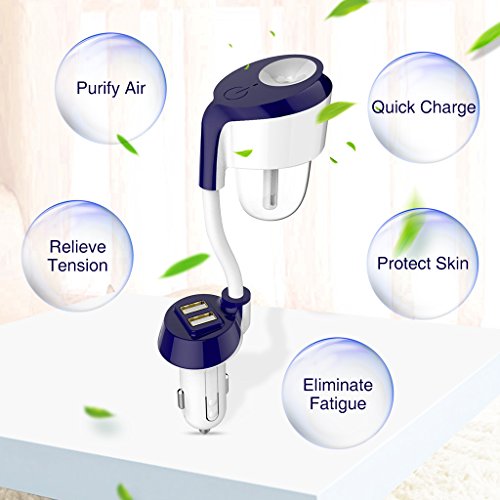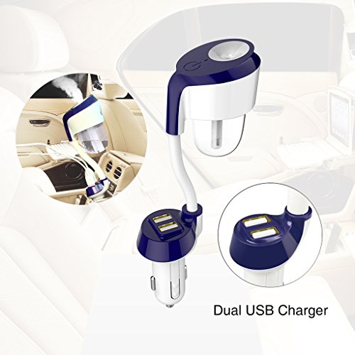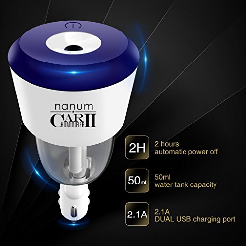 Nanum Car II Cool Mist Humidifier Aroma Fragrance Diffusers Air Freshener Purifier Dual USB Charger Adapter Aromatherapy Essential Oil Diffuser Ultrasonic Auto Shut-Off 360 Degree Rotation(Blue)