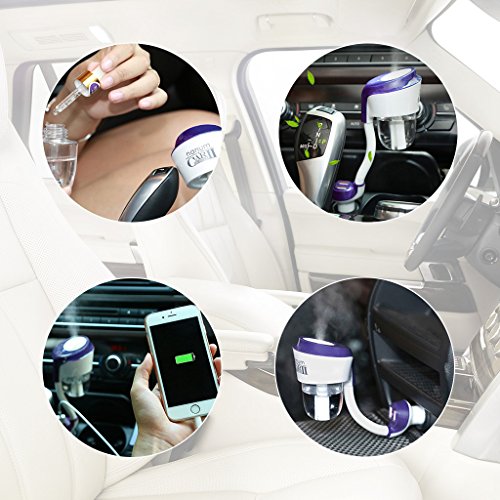 - Independent dual USB charger,user-friendly design more practical and convenient,charging and humidification simultaneously.With an angle adjustable bracket,suitbale for different locations of the vehicle;