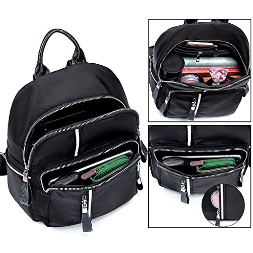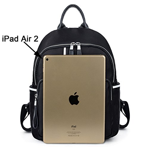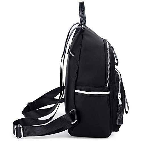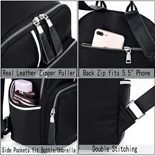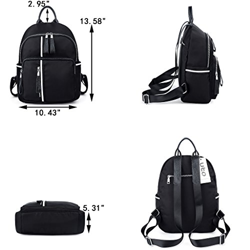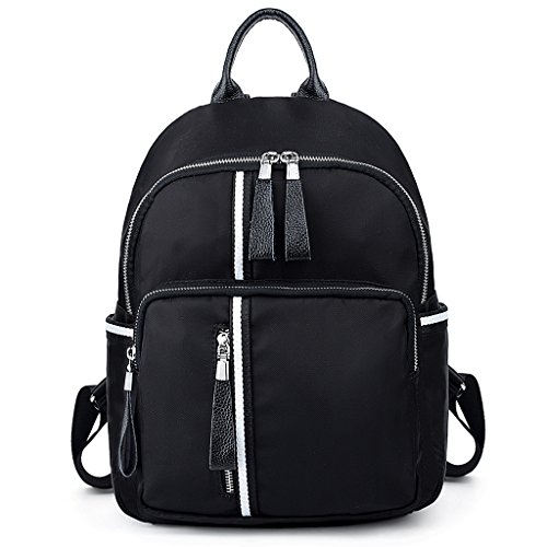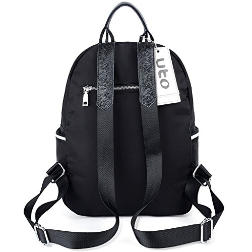 -. Title : UTO Lightweight Nylon Backpack Leather Zipper Puller Straps Stylish Rucksack Travel Bag Shoulder Purse Black