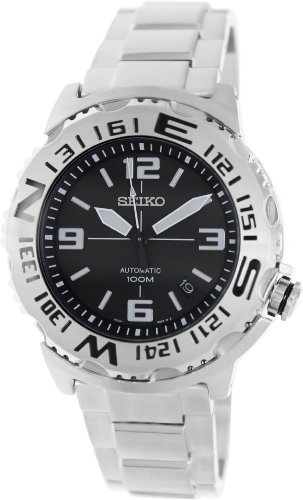 -. Title : Seiko Black Dial Stainless Steel Compass Mens Watch SRP441