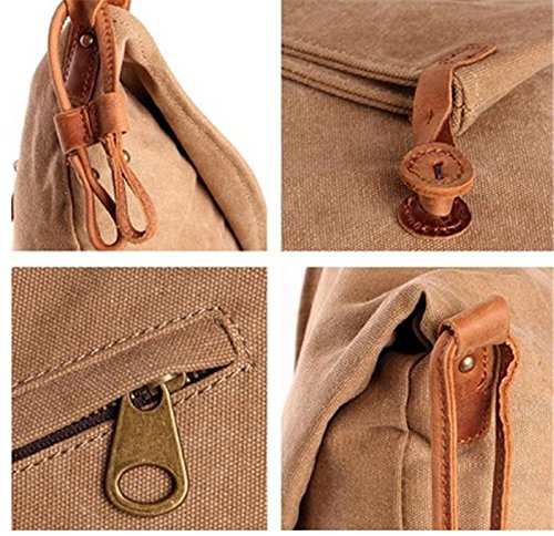 -. Feature : ★ New Arrival Leisure Bag,Material Updated to High Quality Canvas and Leather. It is a Nice Casual Bag and Suitable for Many Occasions. Great for School,Outdoor Living and Journey.Back Wall Zip Pocket for Easy Access. Roomy Fully Lined Fabric Compartment.Casual Life Style,General Use for Female Male / ★ The Bag Folds Over and "Clasps" Via a Leather Strap to a Leather "Button". The Zipper in the Back or Inside is Stable and the Length of the Cord Straps Can be Changed What You Want to be. / ★ This bag is large enough to serve a multitude of purposes. Dimensions: 10.24 x 11.82 x 3.94 inches (W x H x D),so you can use it to bring some books or other big things. There are also two leather zipper pockets inside and other two open pouches inside, which would be taken for cell phone, coin purse or keys, etc. One more leather zipper pockets is in the back. / ★ This stylish sling bag offers storage for your tablet and other essentials for a day of traveling or a trek through the urban jungle.Back wall zip pocket for easy access. Roomy fully lined fabric compartment / ★ Sling this bag across the body for a cool and comfortable look whether you're traveling around the block or around the world. With cool style and canvas materials; it brings you more casual feel and happy to carry it all the time