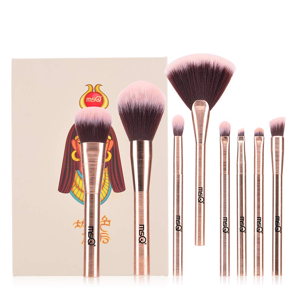 🌸日常メイクに必要なコスメブラシを揃えた8本定番セット:フェイスブラシ、フラットプロファイルブラシ、チークブラシ、ブルーミングブラシ、アイシャドウブラシ、アイシャドウブラシ、アイブロウブラシ、ハイライトブラシ。