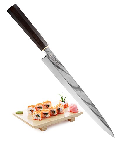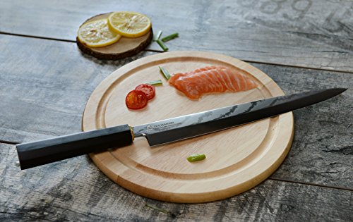 • TUO Yanagiba knife with extremely sharp blade was designed to cut paper-thin slices of fish, ham and meat but no damage to the textures of food.