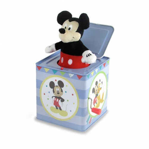 Peek a boo! here comes mickey mouse! this classic toy features adorable mickey mouse graphics on all sides and plays "the mickey mouse march".