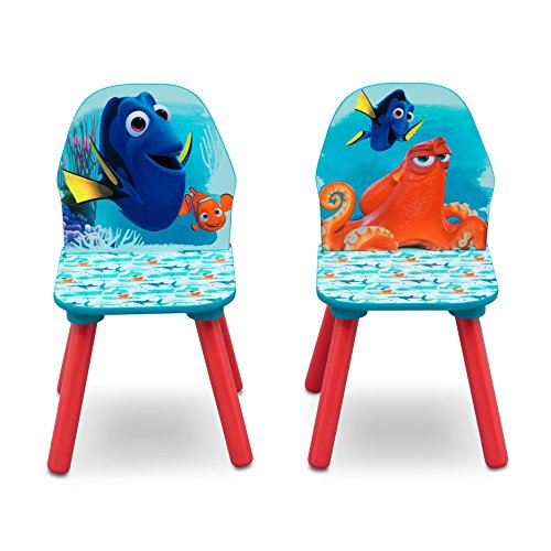 The Disney/Pixar Finding Dory Table & Chair Set with Storage from Delta Children is designed to cause a wave of excitement. Featuring colorful artwork of Dory, Nemo, Hank, Destiny and Bailey, it brings the underwater world of Finding Dory to life. This adorable playroom table also includes toy storage in the middle and two coordinating chairs.