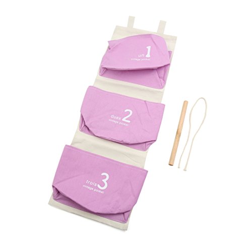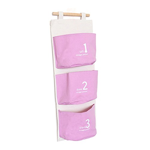 uxcell® Wall Number Prints 3 Pockets Canvas Hanging Cosmetic Storage Bag Organizer Light Purple