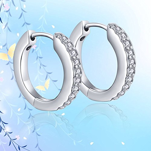 -. Feature : ♥100% Quality Assurance♥ Don't Worry about unsecured clasp or falling stones,and bending. / ♥Refund Guarantee♥ Earring are covered with 180 days months warranty. you'll get a earring or your money back! / ♥Sterling Silver Guarantee♥ This Earring is crafted in 925 Sterling Silver,Length:0.61 inches,Weight is 4.3g. Set with 22 pieces 1.5mm round cut AAA cubic zirconia. / ♥Hoop Design♥ Nobody is perfect, but you are! The Hoop Earring design which express your simple and elegant, implying you beauty is forever. / ♥Best Gift♥ The best gift for Thanksgiving Day/Christmas, wrapped in a elegant blue Gift Box.