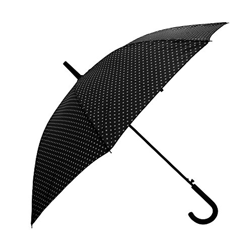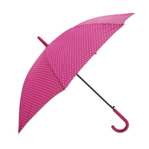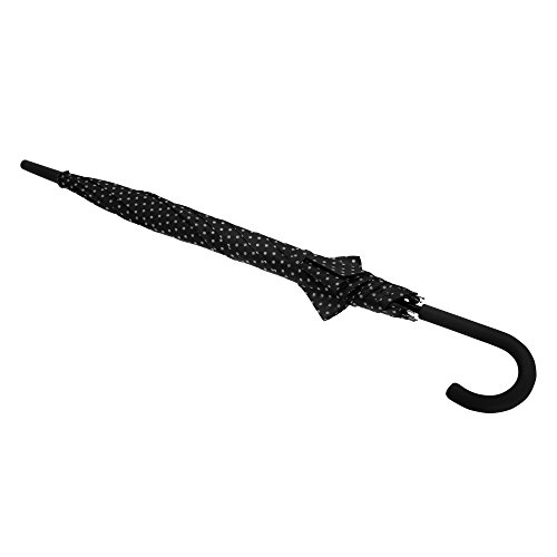 Product DescriptionLadies walking umbrella with polka dot pattern. Plastic handle. Metal frame. Automatic opening build. Touch fastening tab for securing umbrella when not in use. Length: 32in, Diameter: 39in. Fabric: 100% Taslan.0