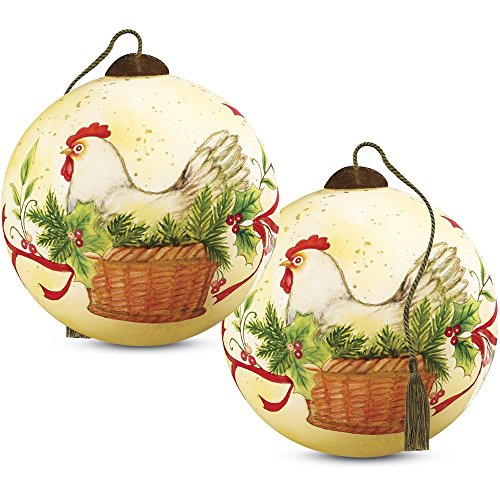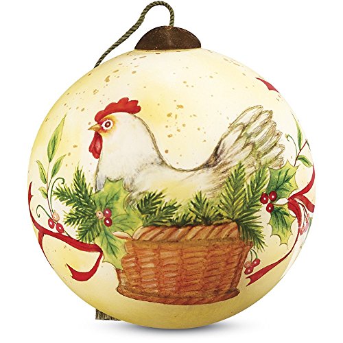 Ne’Qwa Art, Twelve Days of Christmas, Christmas Gifts, “Three French Hens” Artist Susan Winget, Petite Round-Shaped Glass Ornament, #7161142