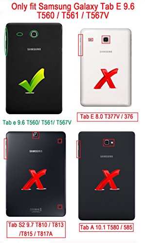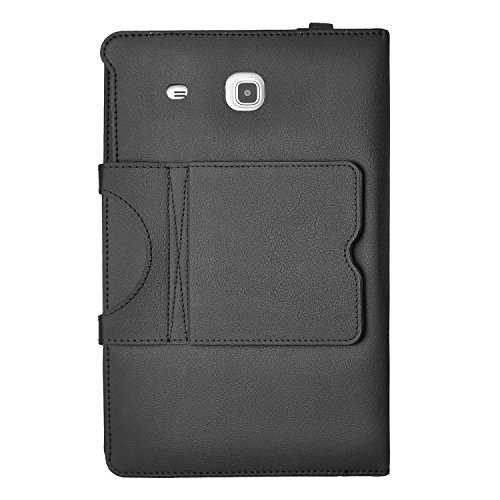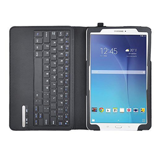 Samsung Galaxy tab E 9.6 Keyboard case, KuGi Ultra-thin Detachable Bluetooth Keyboard Stand Portfolio Case / Cover + stylus for Samsung Galaxy tab E 9.6 tablet. (Black)