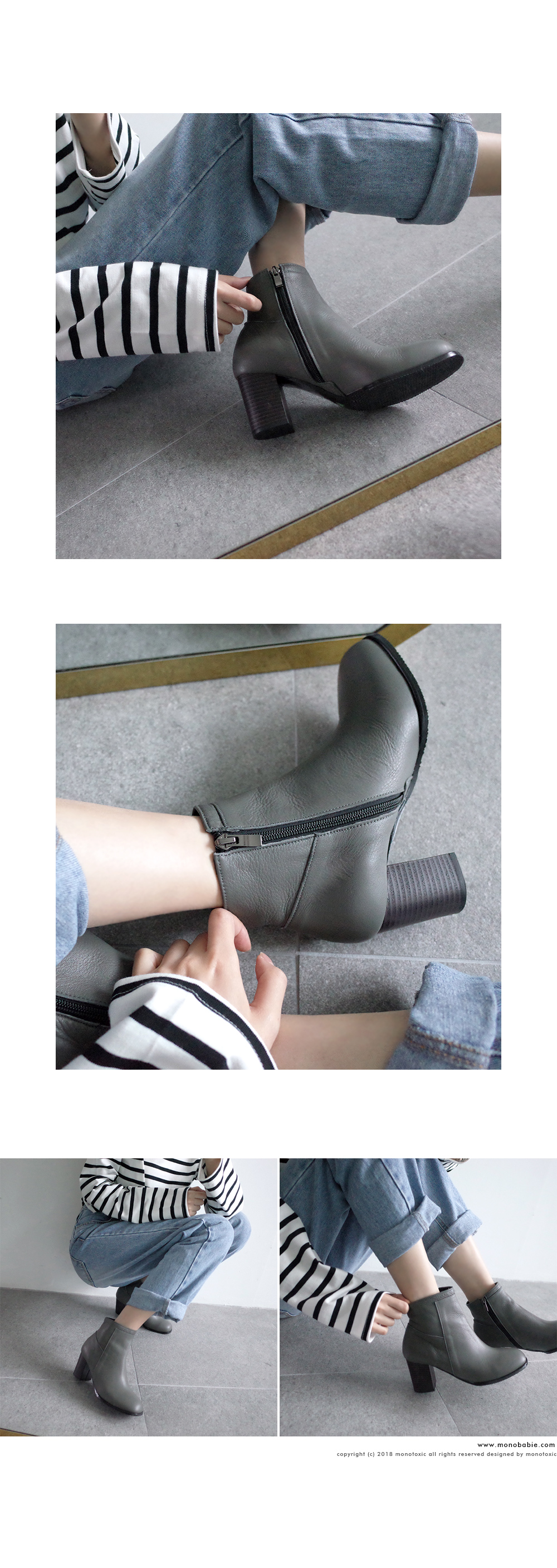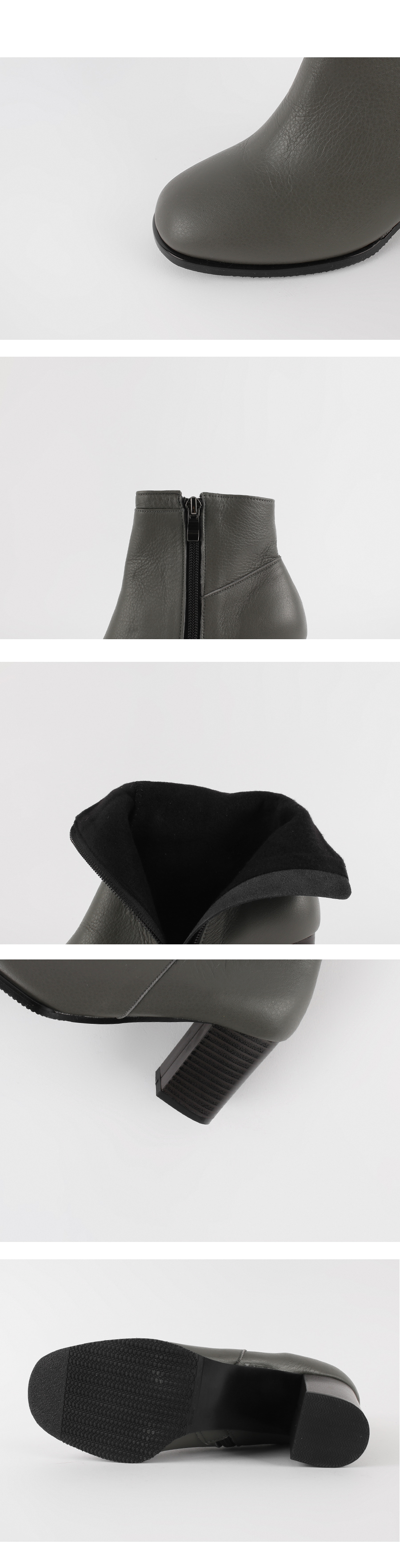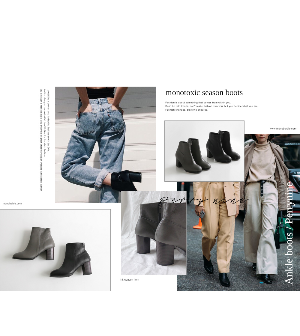 라운드진 쉐입의 큐트하게 디자인된 앵클부츠입니다.