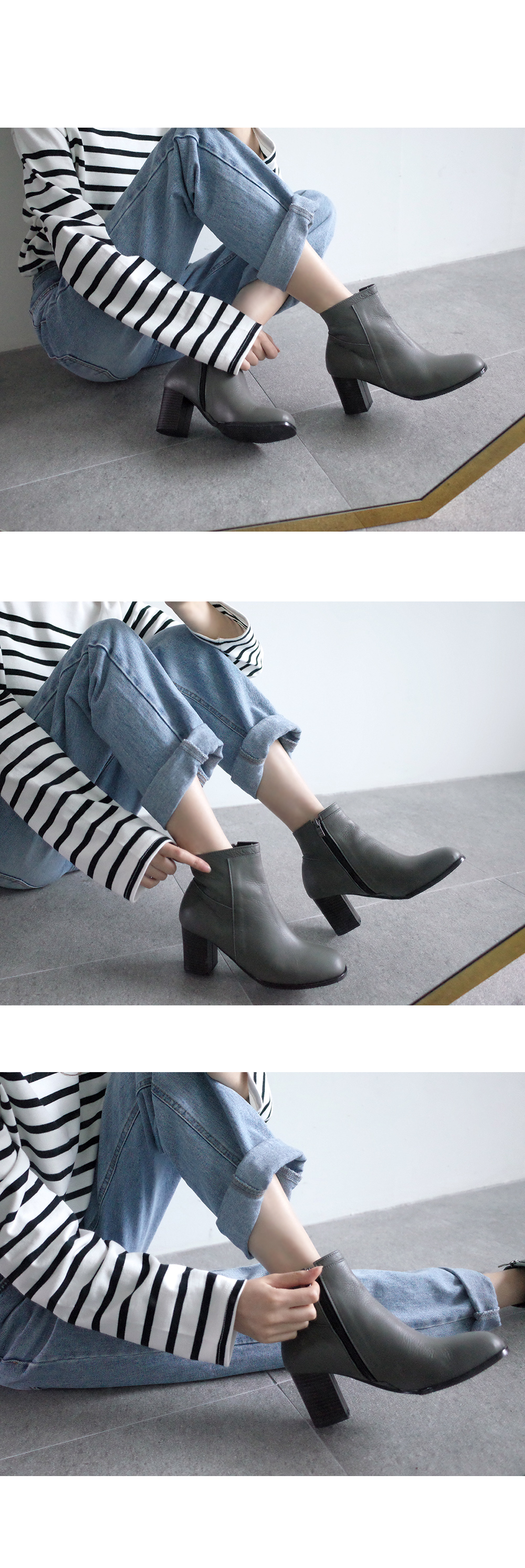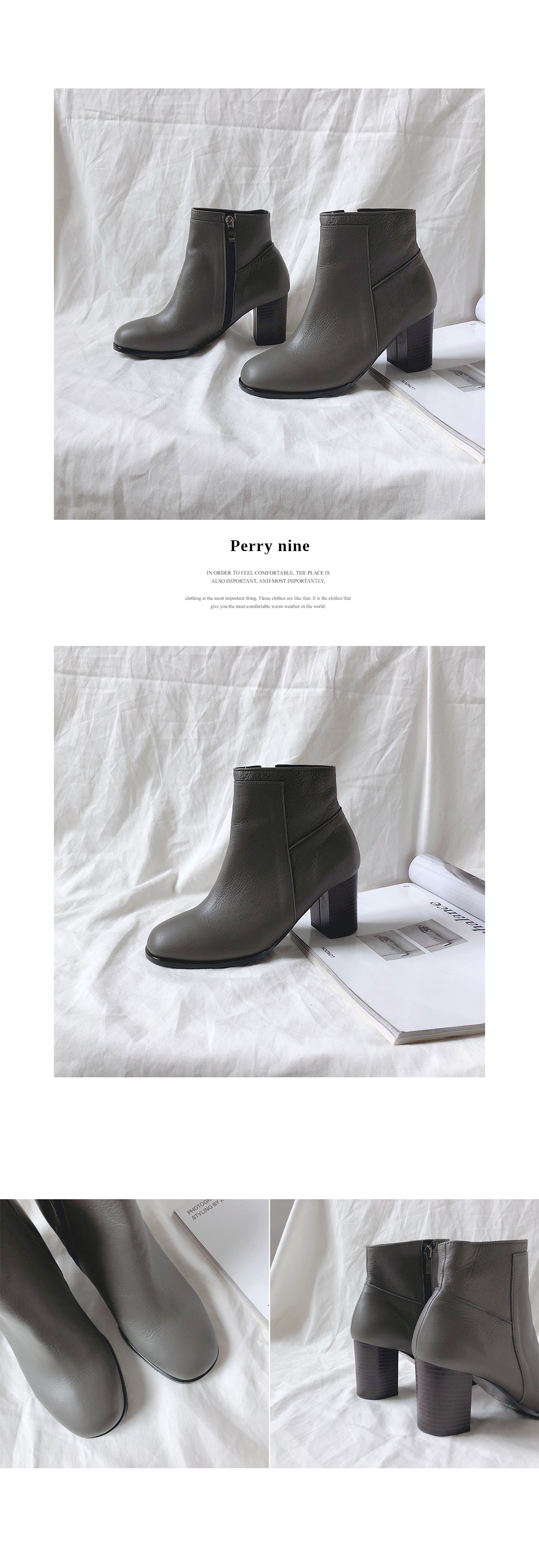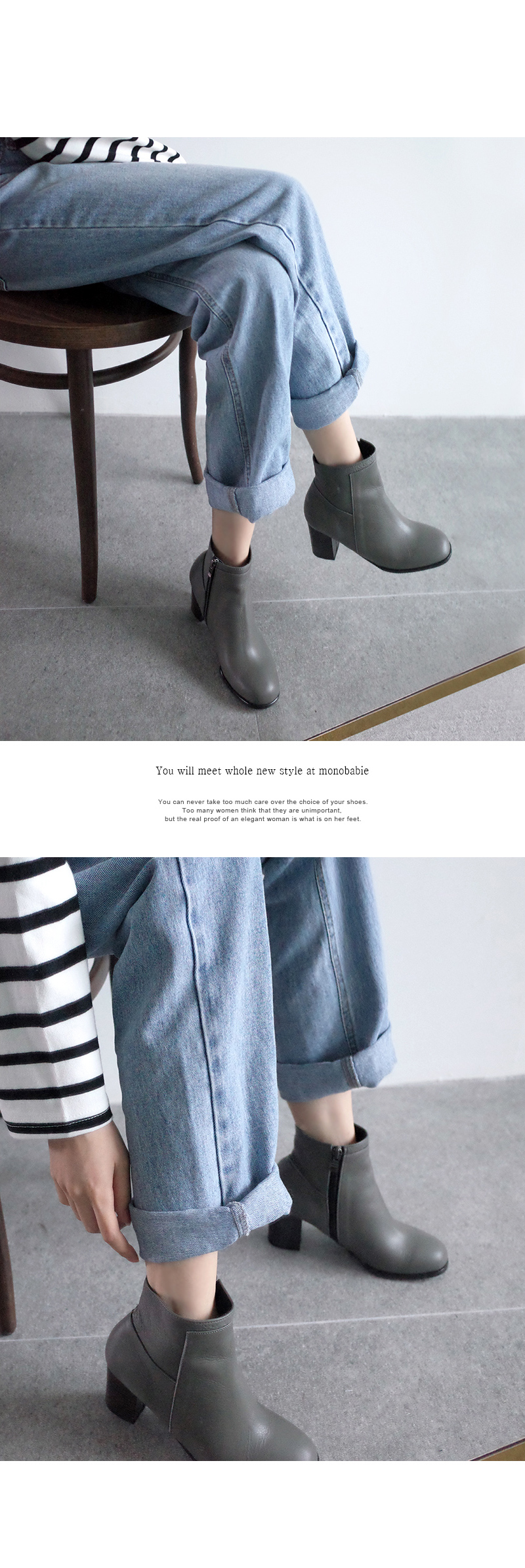 라운드진 쉐입의 큐트하게 디자인된 앵클부츠입니다.