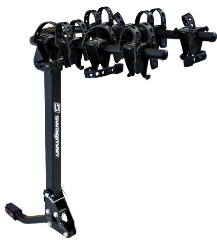 This bike rack transports up to 4 bikes. It has a built in anti-wobble hitch device. Our new two arm rack with rotating cradles allows a wide variety of bike frames to fit. Arms easily fold away and rack folds down to allow access to the rear of your vehicle. Super soft and flexible cradles. Compatible with 1-1/4" and 2" receiver hitch. Minimal assembly required.Feature