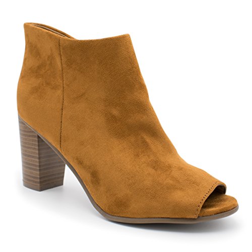 Breckelle's Women's Stacked Chunky Heel Peep Toe Bootie