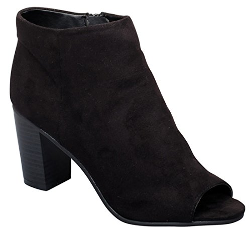 Product Description Breckelle's Women's "Amber-31" sueded peep toe booties feature solid faux suede throughout with stacked faux wooden 4" heel. Inside zip closure. Imported. 0