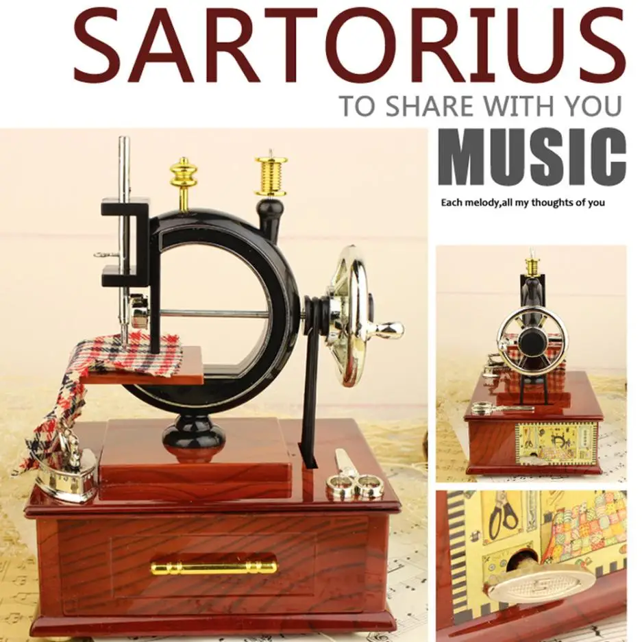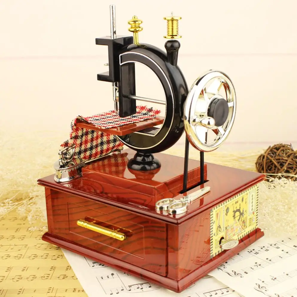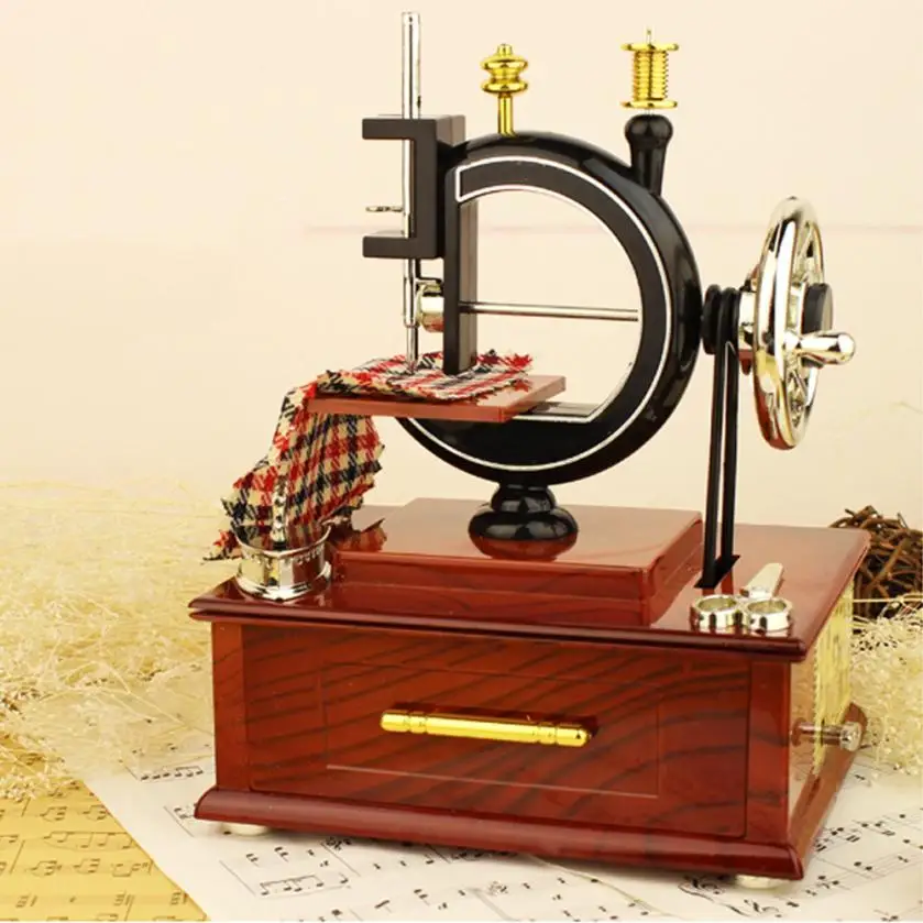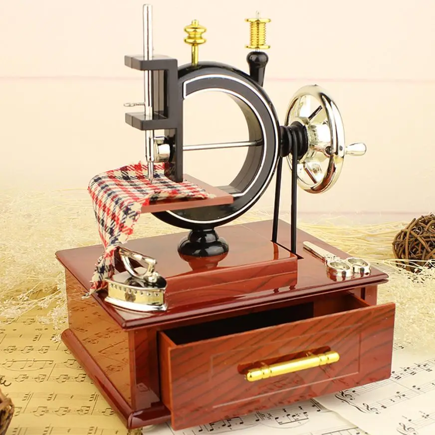 Vintage Music Box Mini Sewing Machine Style Mechanical Birthday Gift Table Decor happy birthday music box caja de musica