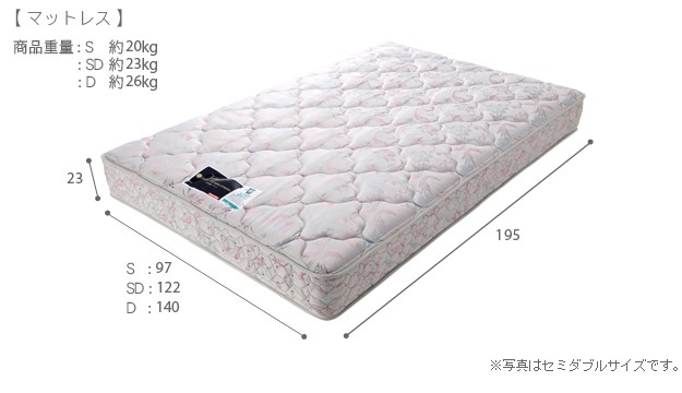 サイズ(cm):[ベッド]幅138.6x奥行198x高さ22.5(床板高さ22.5)cm・約54kg、[マットレス]幅140x奥行195x高さ23cm・約26kg